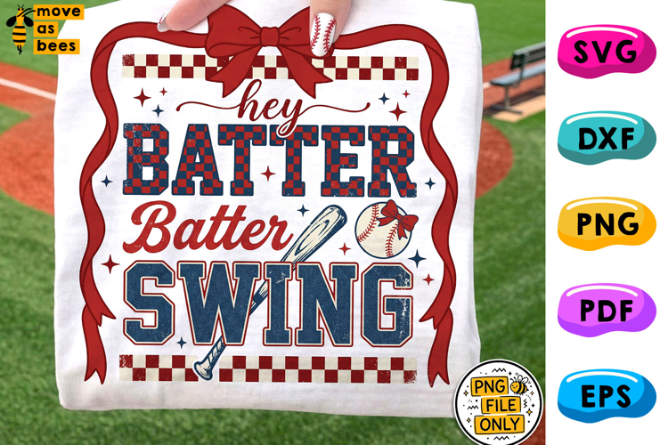 Hey Batter Batter Swing PNG, Preppy Bow, Baseball Cheer, Mom