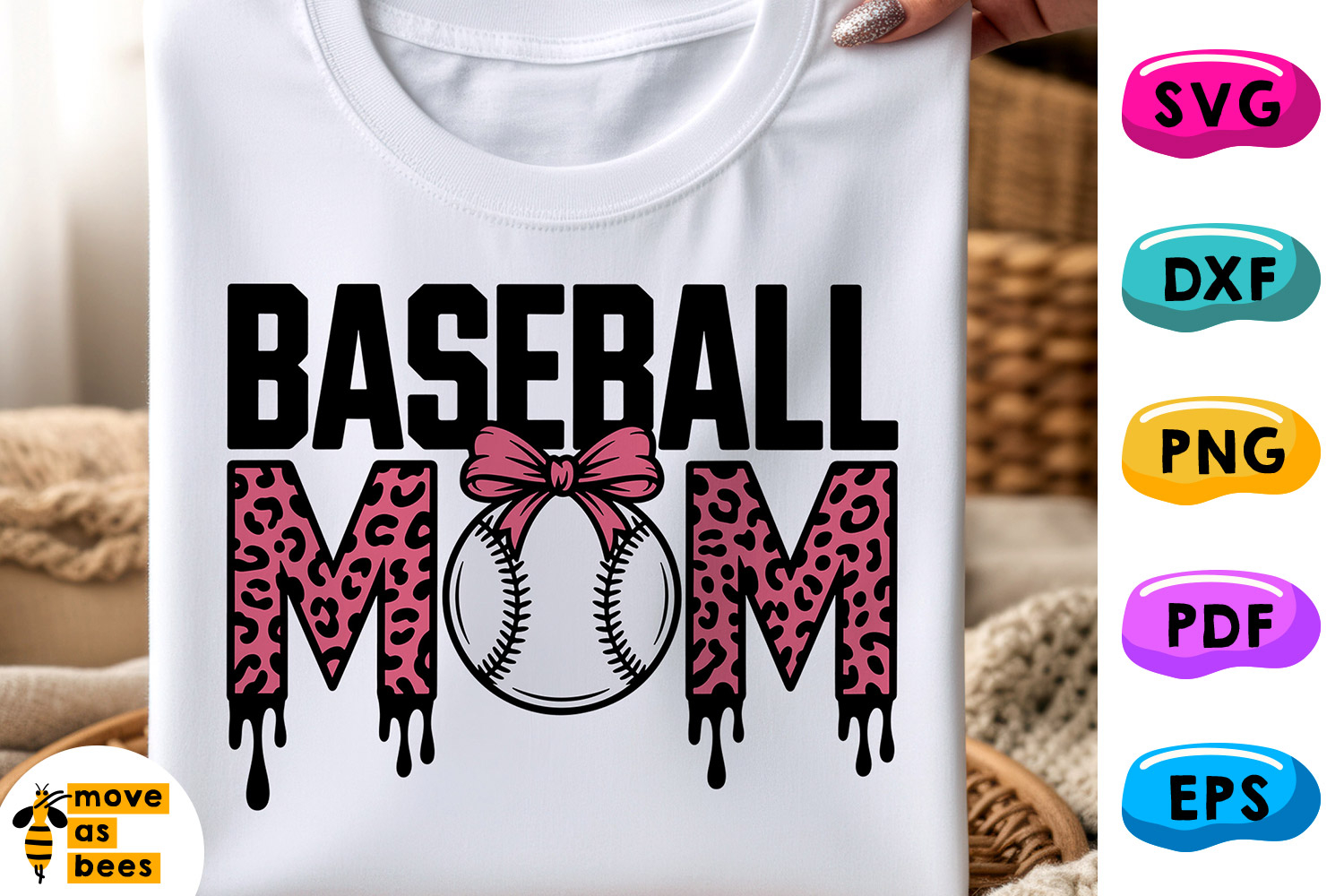 Baseball Mom SVG, PNG, Preppy Bow, Leopard Print, Mama Shirt, for Cricut, Iron on, Dxf Silhouette Cut File, Sublimation, Heat Press Transfer