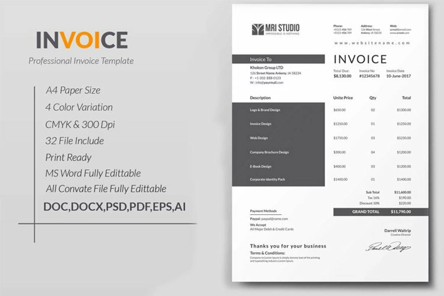 Professional Invoice Multi Use Clean Invoice Invoice Minimal Invoice Word Word Invoice