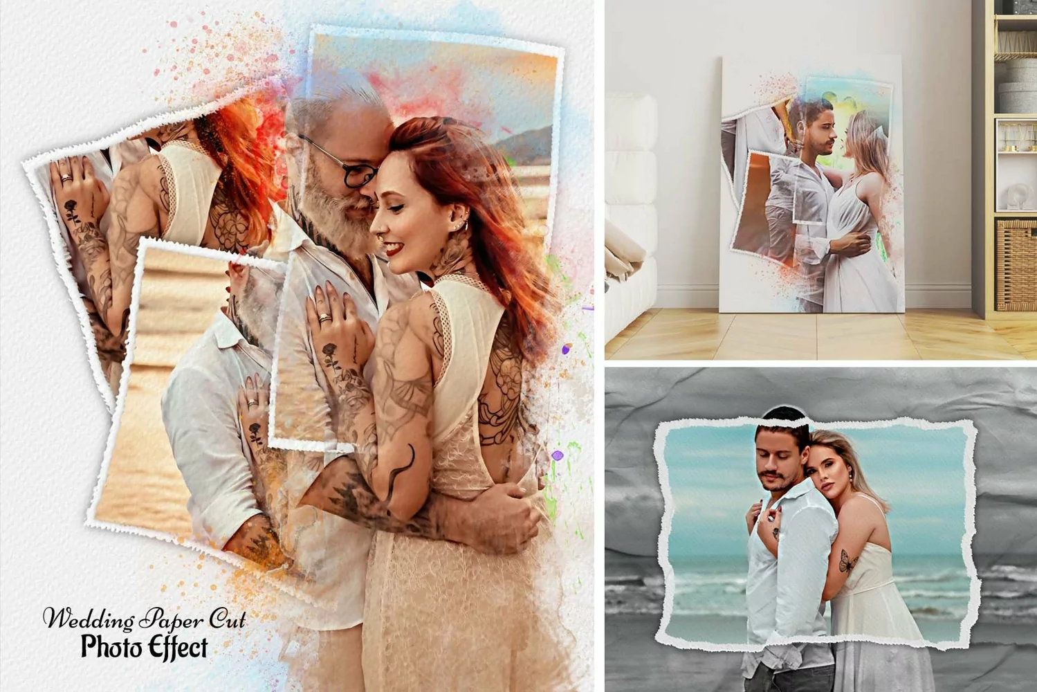 Wedding Photo Effect Photoshop Action Watercolor Effect Wedding Photo Wedding Couple Wedding Paper Cut Wedding Effect Paper Cut Photo Effect Wedding Paper Cut Photo