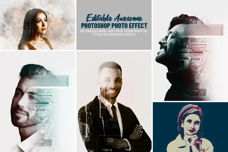 • 04 Unique Photo Effect Photoshop Raw Psd ( like Mockup Creator file ) includes file