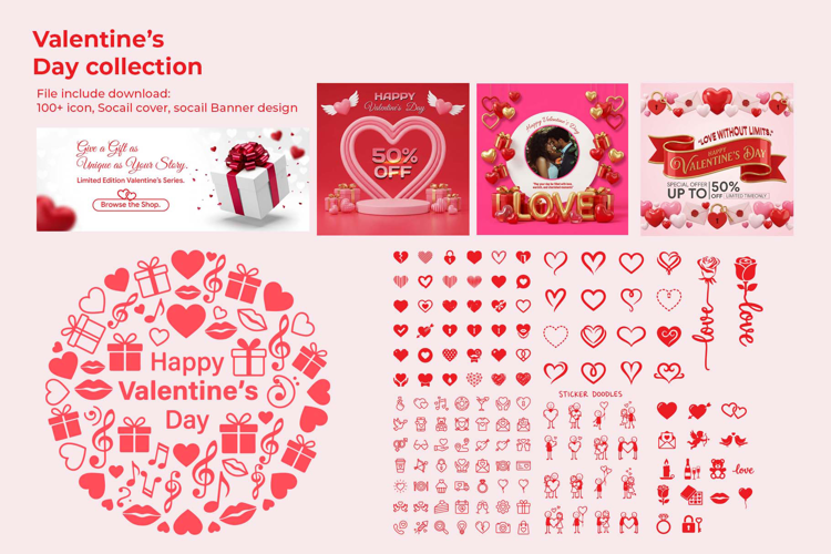 Huge value alert! Get our complete Valentine's Day Toolkit at an unbeatable price. This massive bundle includes 100+ icons, sticker doodles, and several social media banner designs. Whether you're a owner or a content creator, these assets provide everything you need for consistent, professional romantic branding across all platforms.
