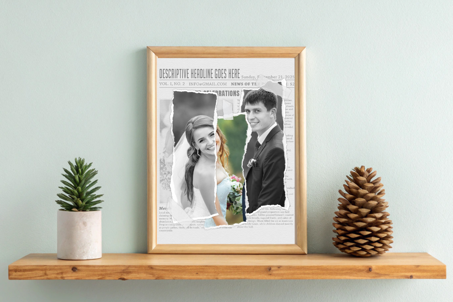 Wedding Photo Effect Photoshop Action Newspaper Wedding Art Psd Template Paper Cut Newsprint Torn Paper Ripped Edge