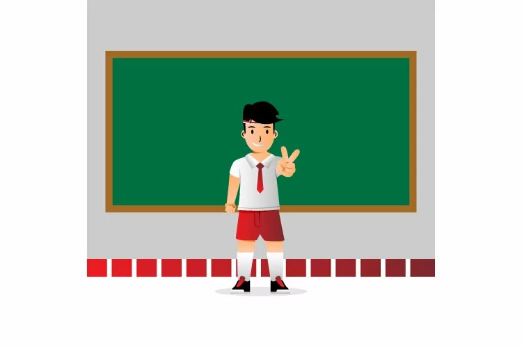 Indonesia male elementary school student illustration in front of the class for print, decoration, element design and background