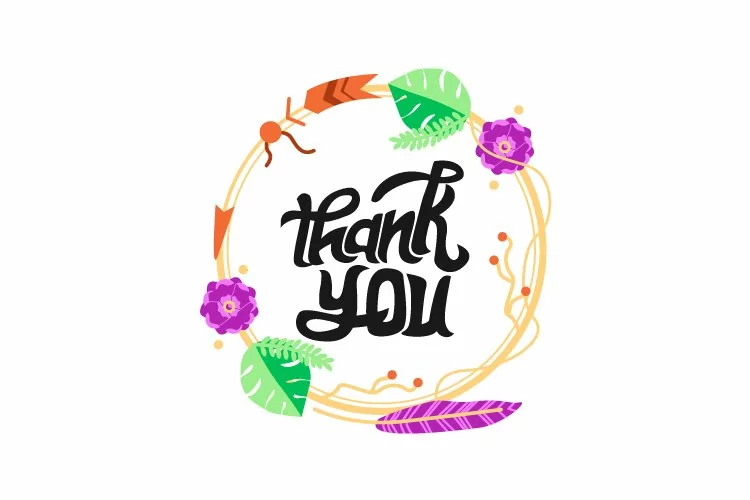 Greeting card thank you with scandinavian frame for print, decoration, element design and background