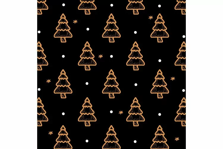 Pattern hand drawn christmas tree art design on black 01 example image 1