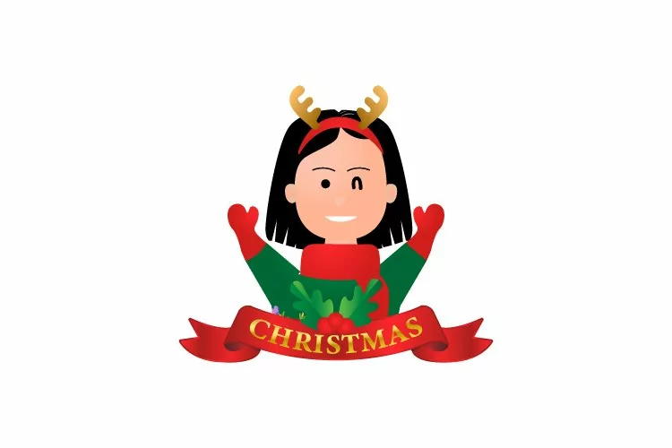 Illustration girl and christmas ribbon design for print, decoration, element design and background
