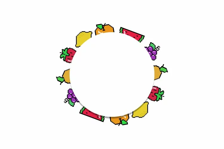 Circle frame fruits pixel art design for print, decoration, element design and background