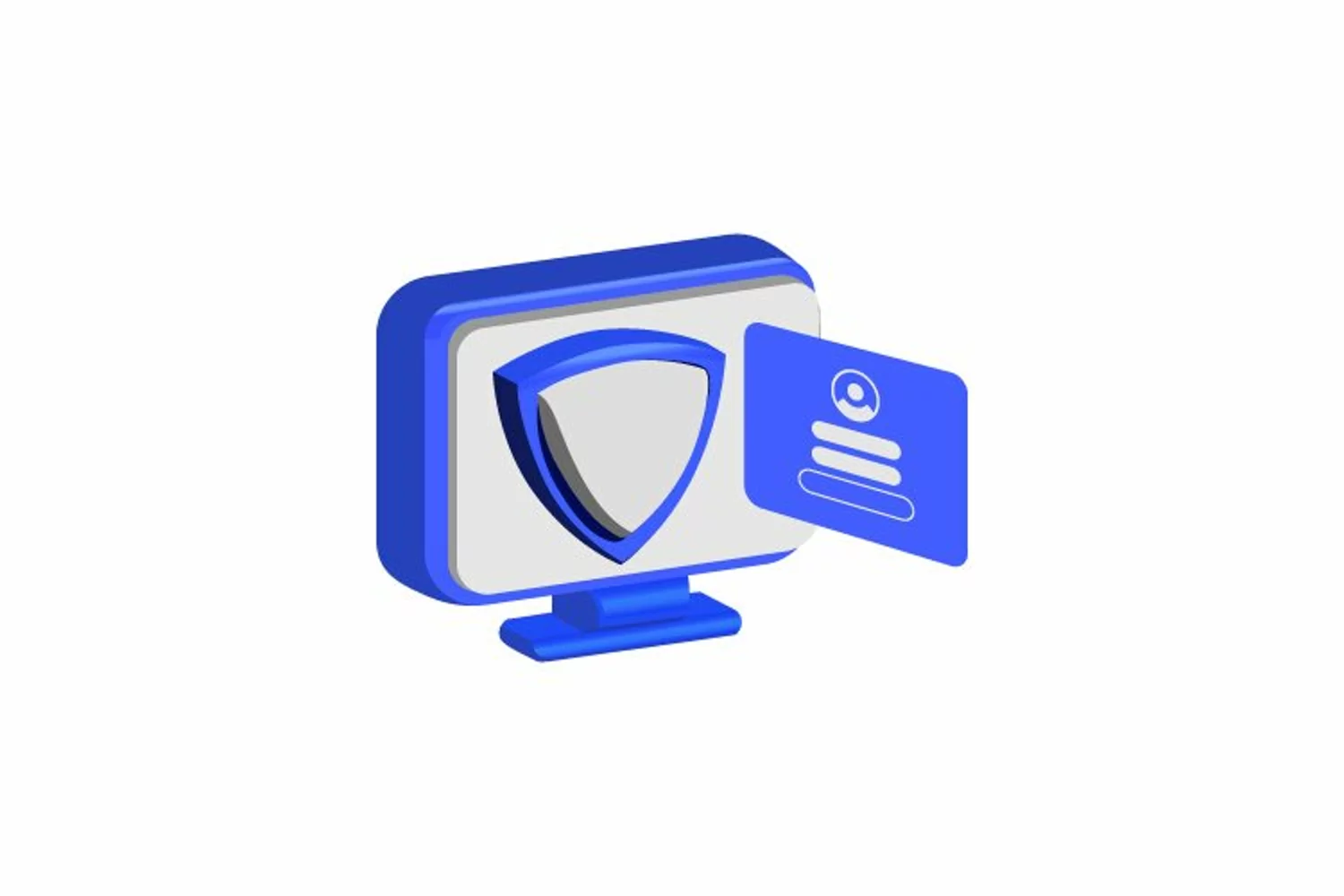 3d computer with data security design vector isolated for print, decoration, element design and background