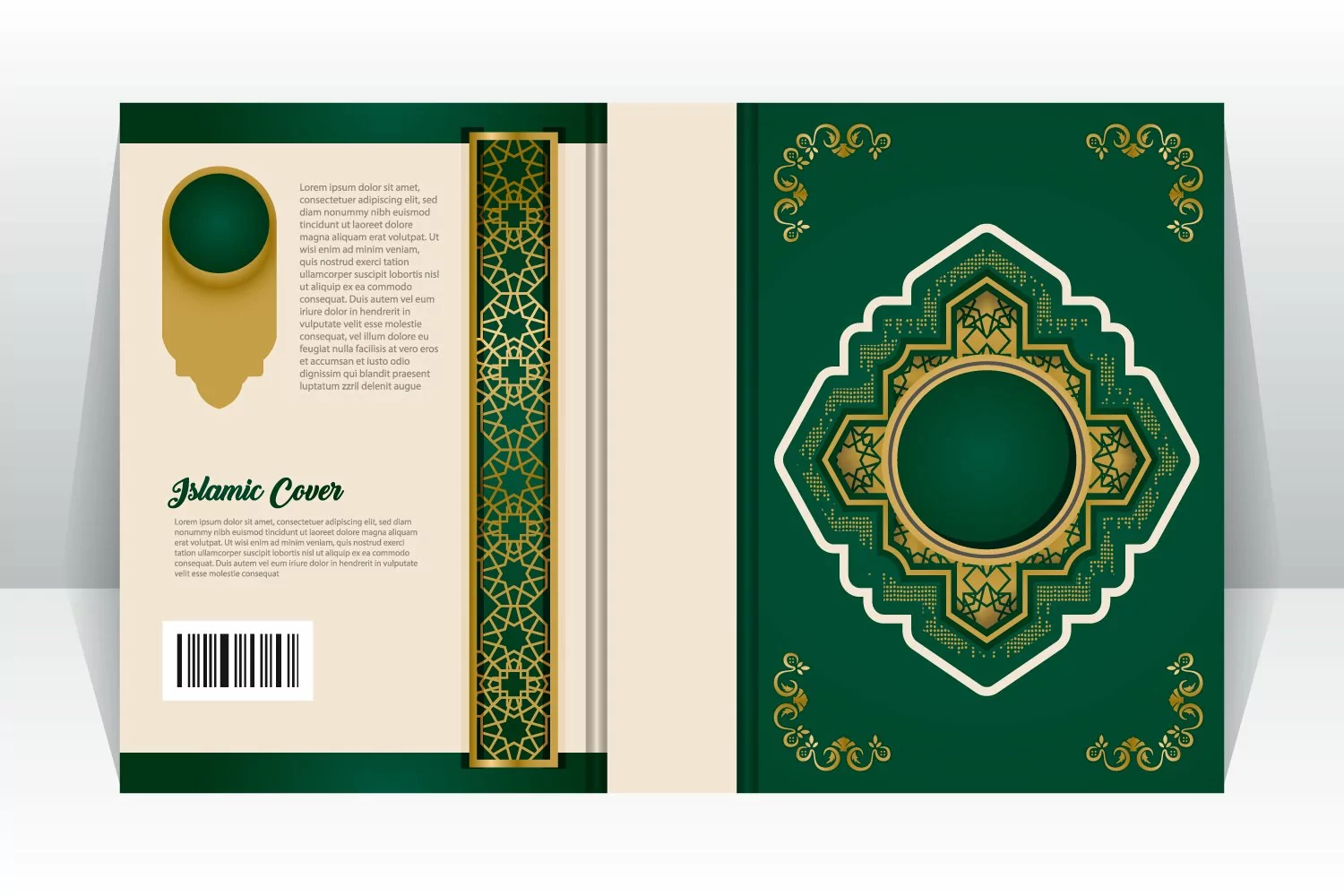 Islamic book cover with arabesque arabic element template graphic for print, decoration, element design and background