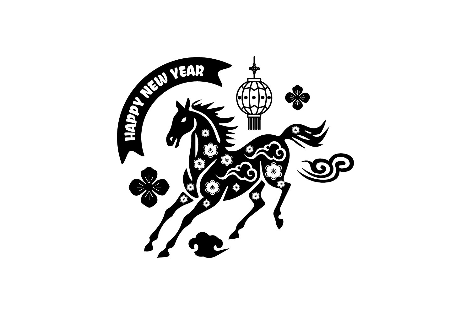 Black and white lunar new year 2026 horse chinese zodiac example image 1