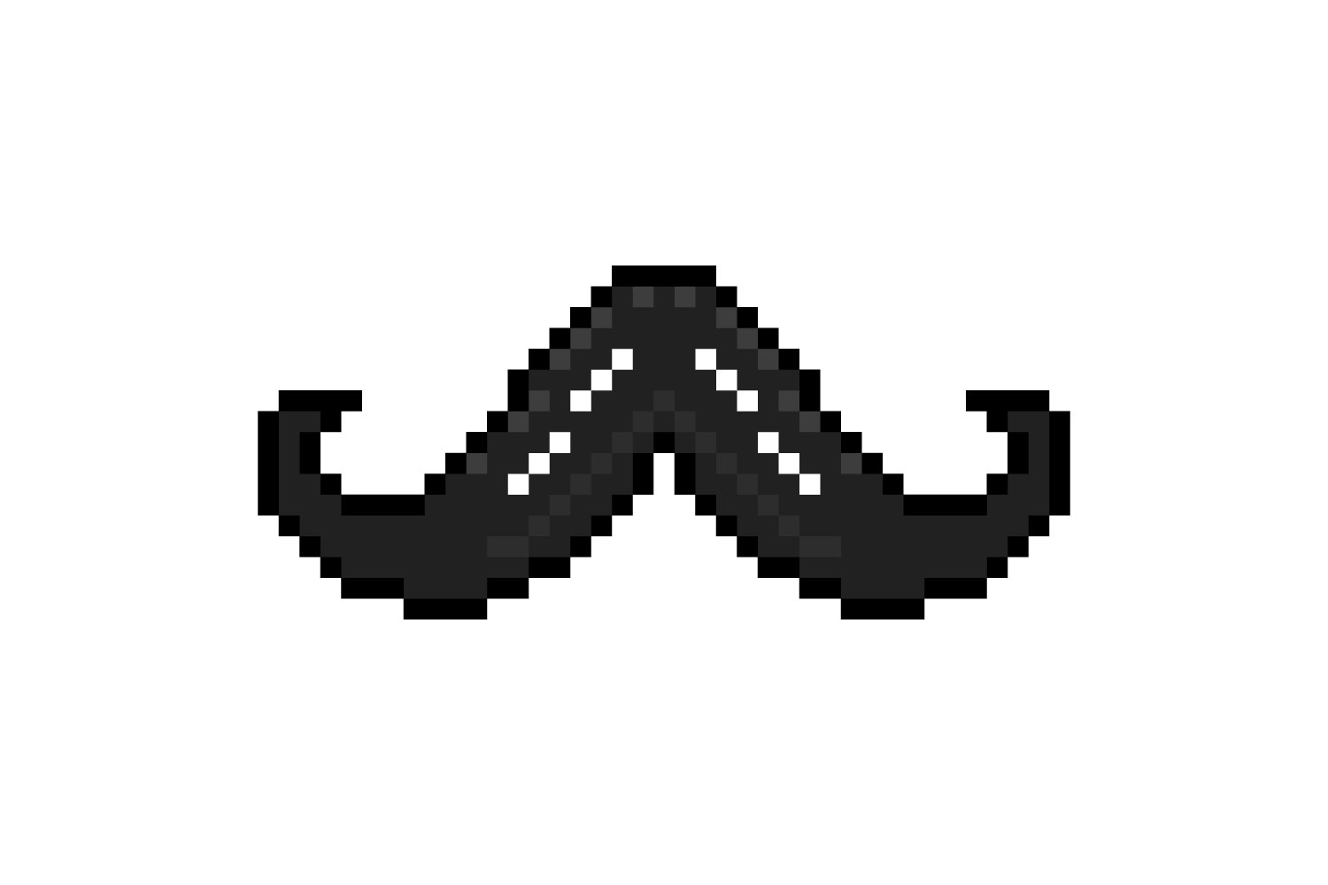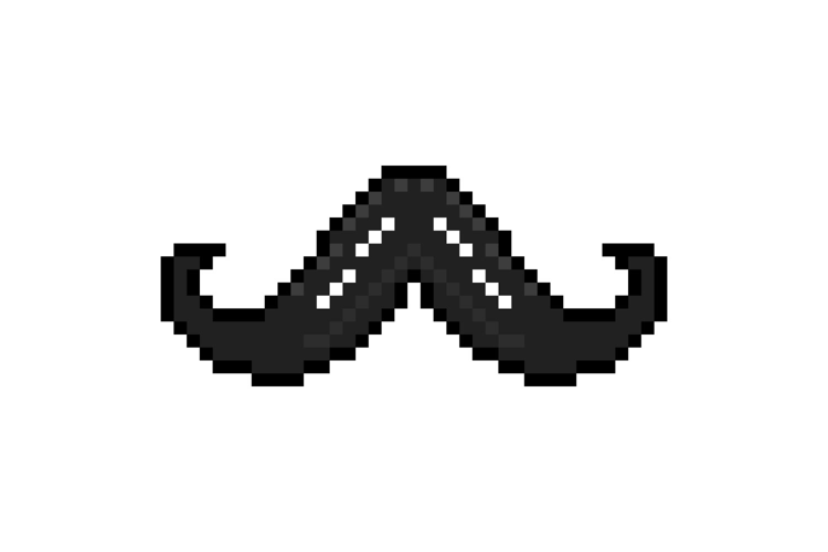 Pixel art black moustache object graphic element for print, decoration, element design and background