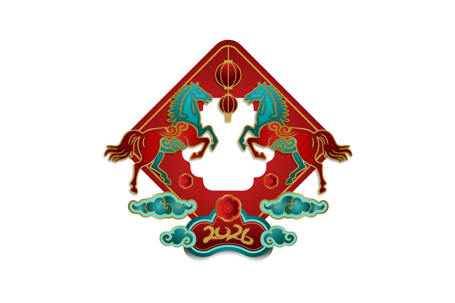 2026 Lunar new year horse chinese zodiac and spring festival isolated for print, decoration, element design and background