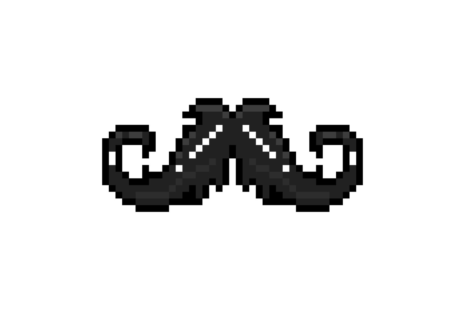 Pixel art black moustache graphic design element for print, decoration, element design and background