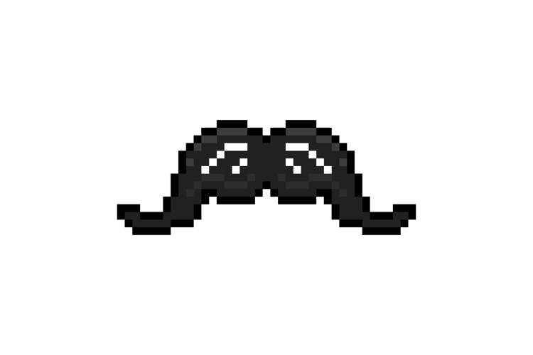 Pixel art black moustache graphic design icon for print, decoration, element design and background