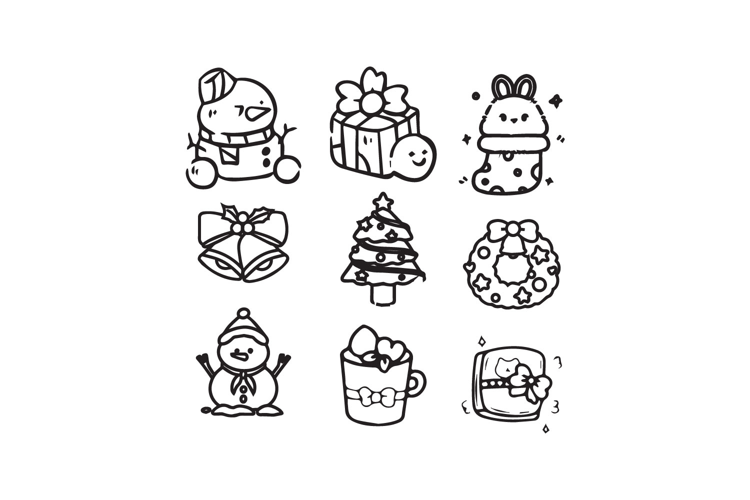 Hand drawn christmas outline icon collection design for print, decoration, element design and background