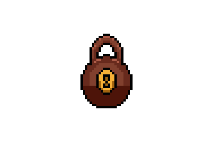 Pixel art rusty padlock graphic design example image 1