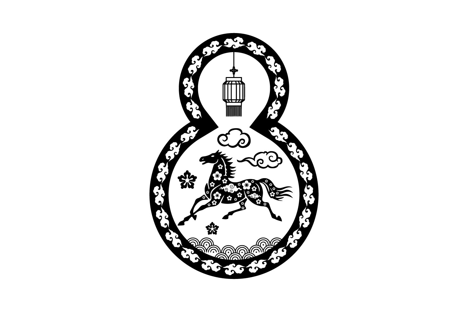 Lunar horse new year 2026 black graphic for print, decoration, element design and background