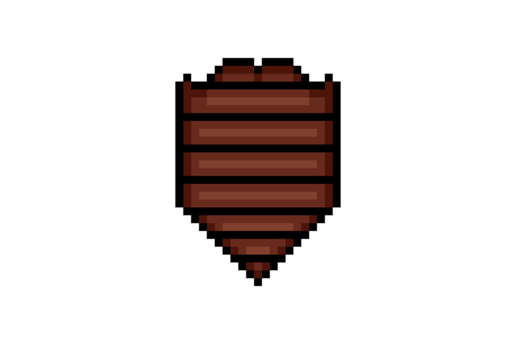 Pixel art wooden shield shape ui game element