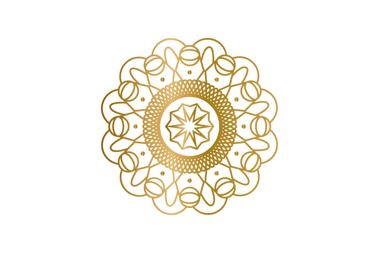 Gold mandala floral decorative element isolated