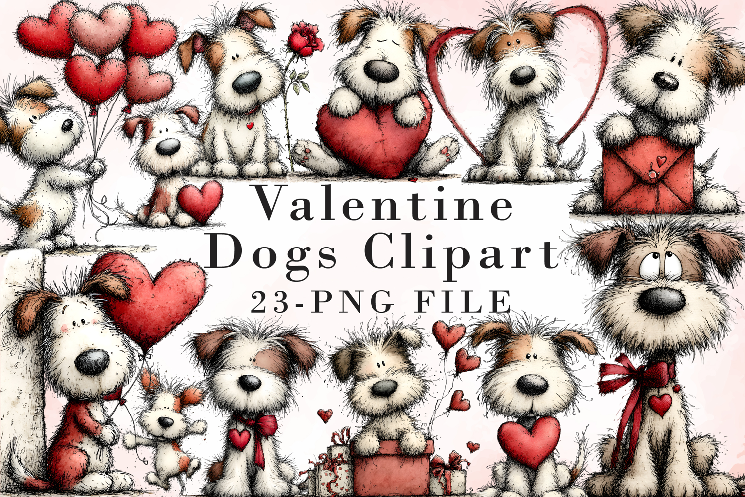 Valentine’s Day Dogs Clip art ,Valentines Sublimation Design