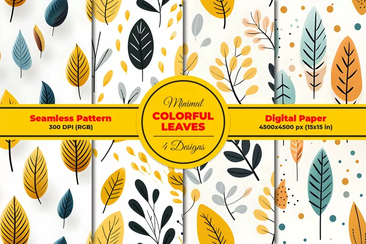 Minimal Colorful Leaves Seamless Pattern and Digital Paper