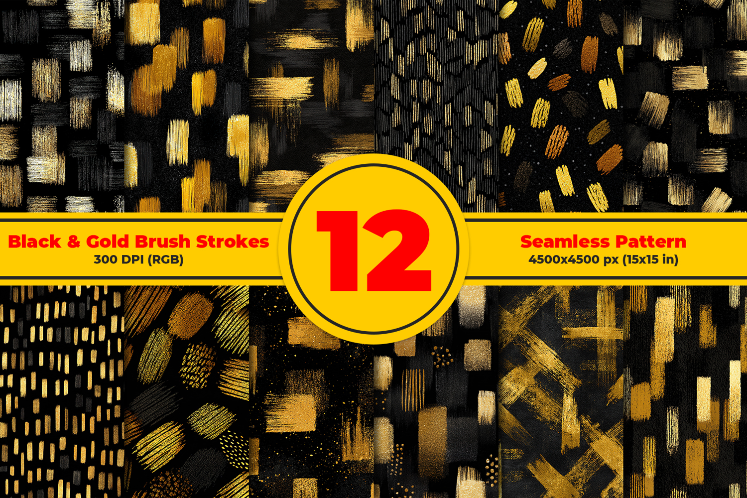 Similar Design Products to Black and Gold Brush Strokes Seamless Pattern