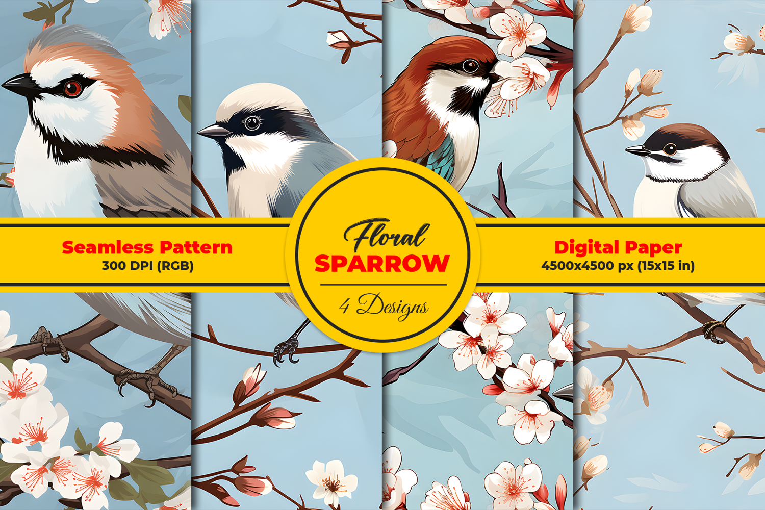 Floral Sparrow Seamless Pattern and Digital Paper Background