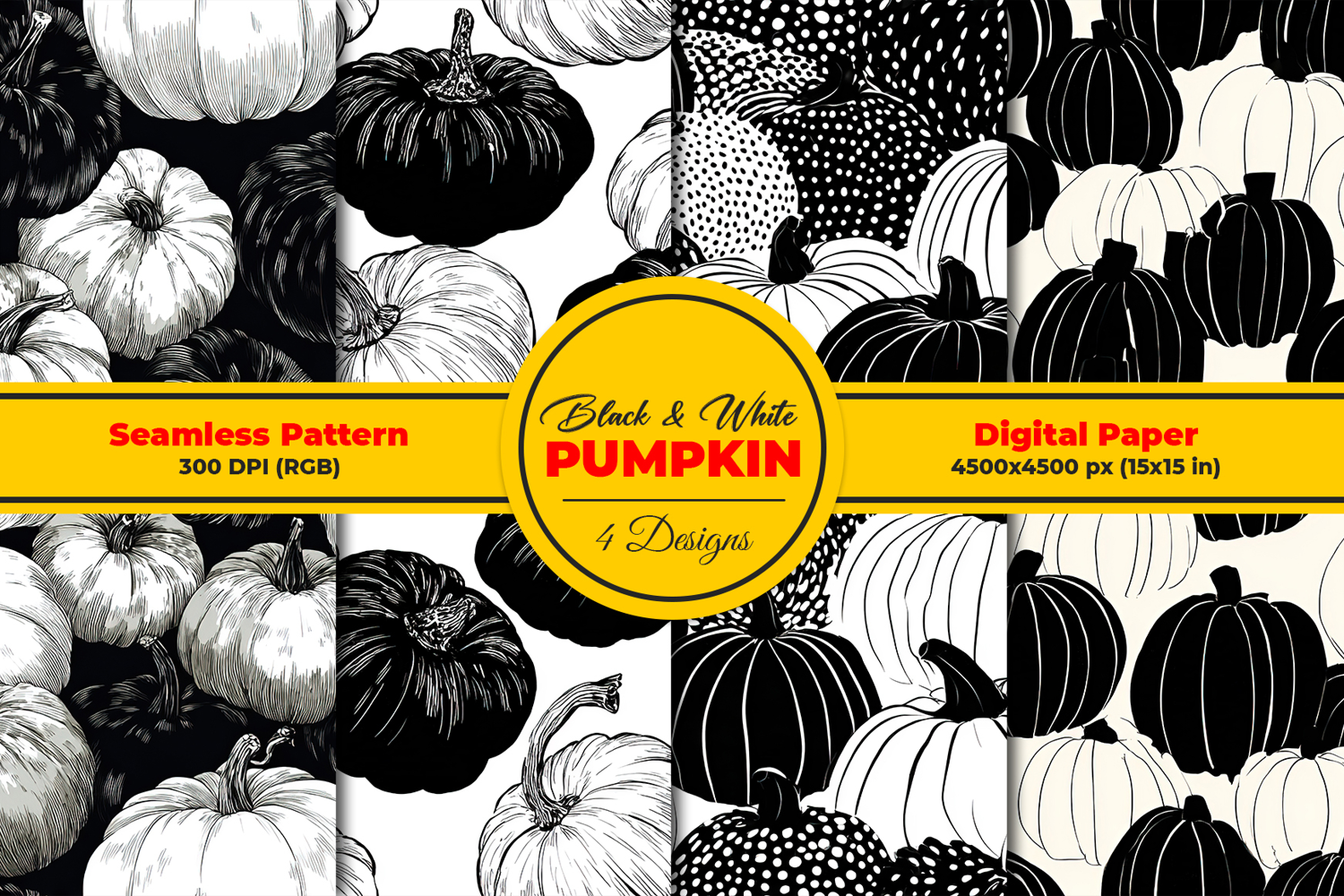 Similar Design Products to Black and White Pumpkin Seamless Pattern and Digital paper