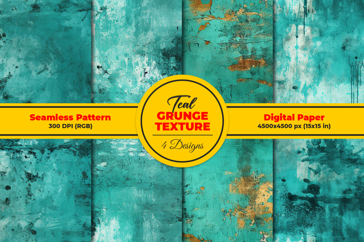 Teal Grunge Texture Seamless Pattern and Digital Paper.