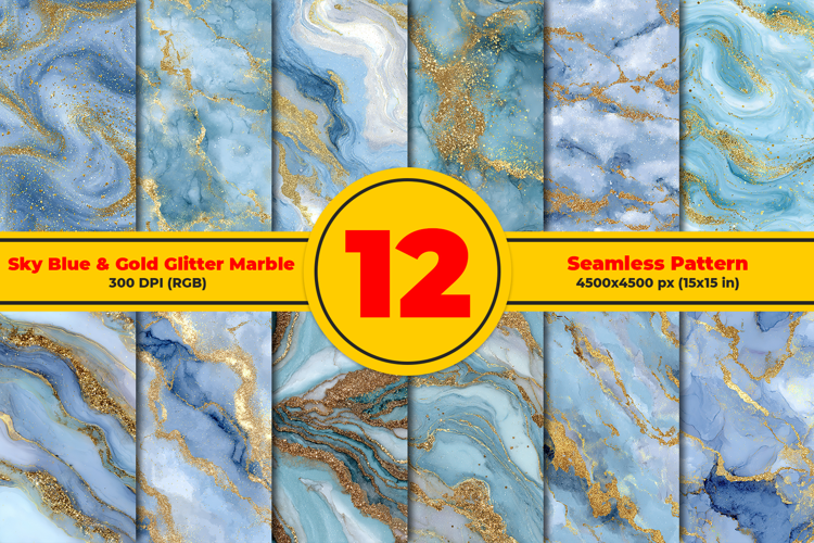 Similar Design Products to Sky Blue and Gold Glitter Marble Seamless Pattern