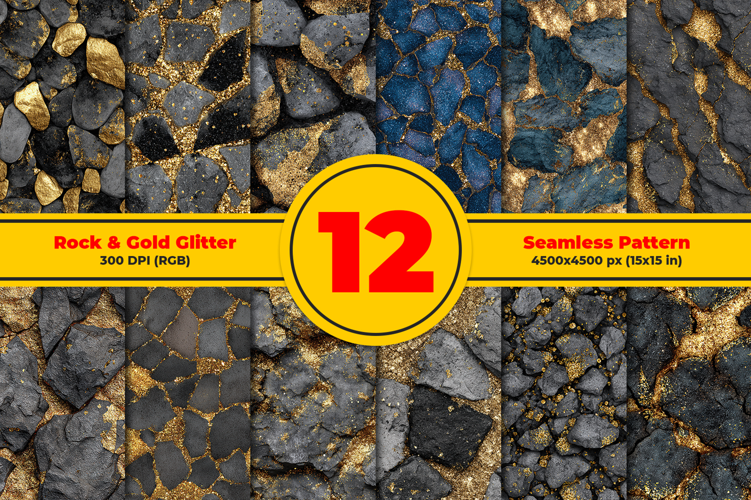 Rock and Gold Glitter Seamless Pattern and Digital Paper Design
