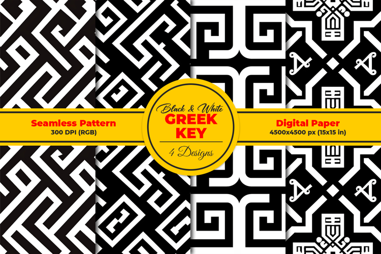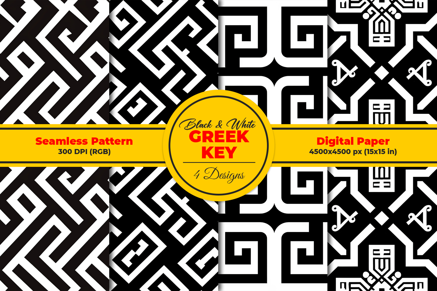 B&W Greek Key Seamless Pattern and Digital Paper Design