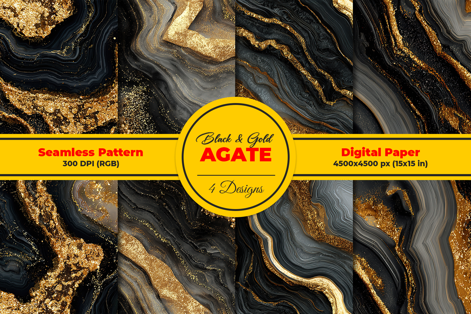 Gold Black Papers Agate Geode Agate Digital Papers Agate Pattern Golden Agate Seamless Agate Black Gold Agate Texture