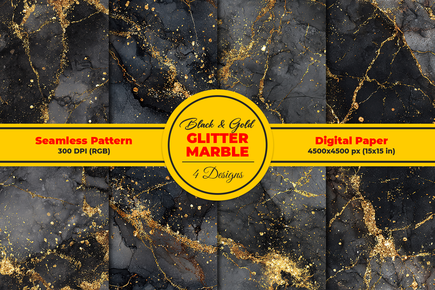 Black & Gold Glitter Marble Texture Seamless Pattern and Digital paper