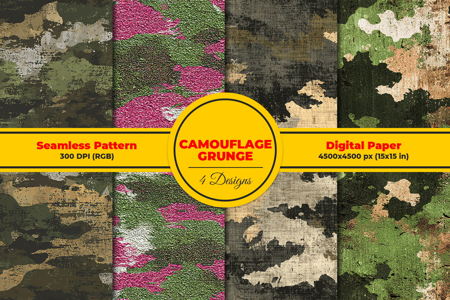Camouflage Grunge Texture Seamless Pattern and Digital paper
