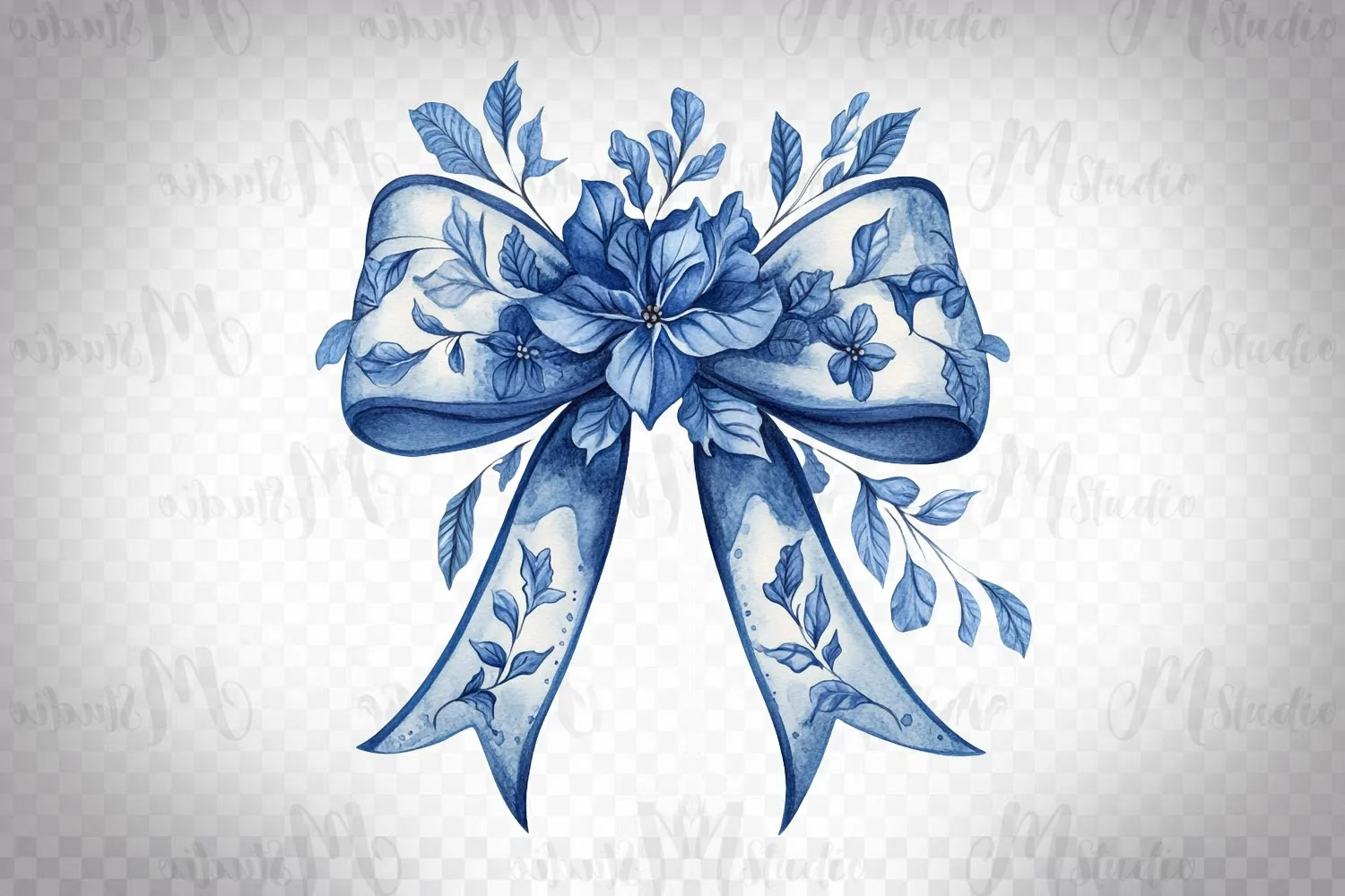 Blue floral Bow, Clipart PNG, Sublimation Design. example image 1