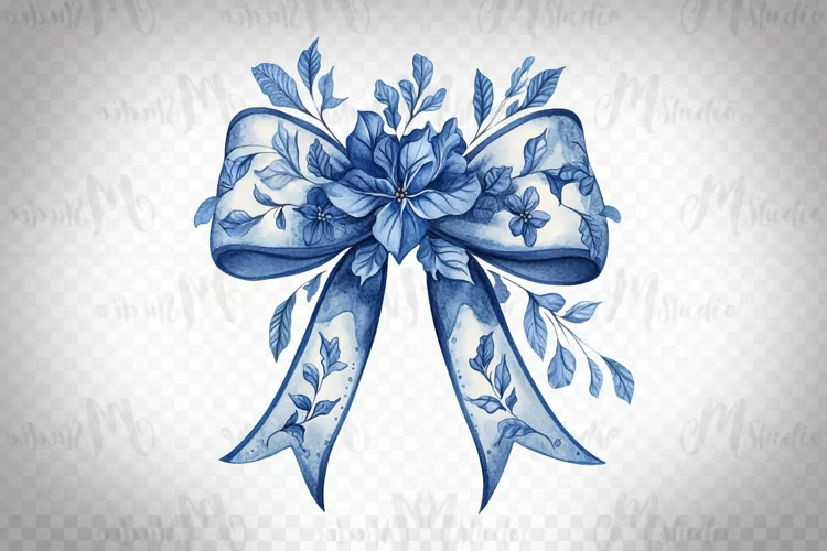 Similar Design Products to Blue floral Bow, Clipart PNG, Sublimation Design.