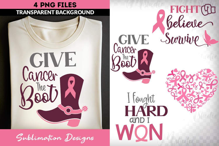 Breast Cancer Awareness Give Cancer The Boot Breast Cancer Support Awareness Ribbon Png Pink Ribbon Sublimation Sublimation T-shirt Design Fight Believe Survive I Fought Hard And I Won October Awareness Month Cancer Survivor Quotes