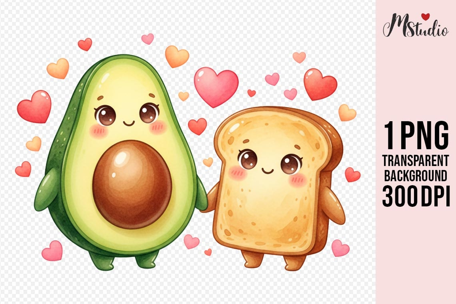 Cute Avocado & Toast PNG Kawaii Breakfast Clipart example image 1