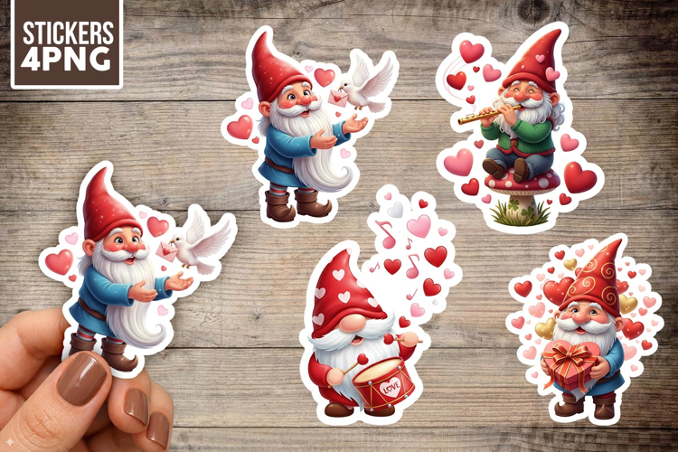 Valentine Gnome Stickers PNG Clipart, 4 Designs
