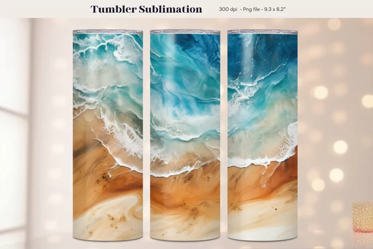 Resin and Wood Tumbler Wrap | Beach Tumbler Sublimation Png