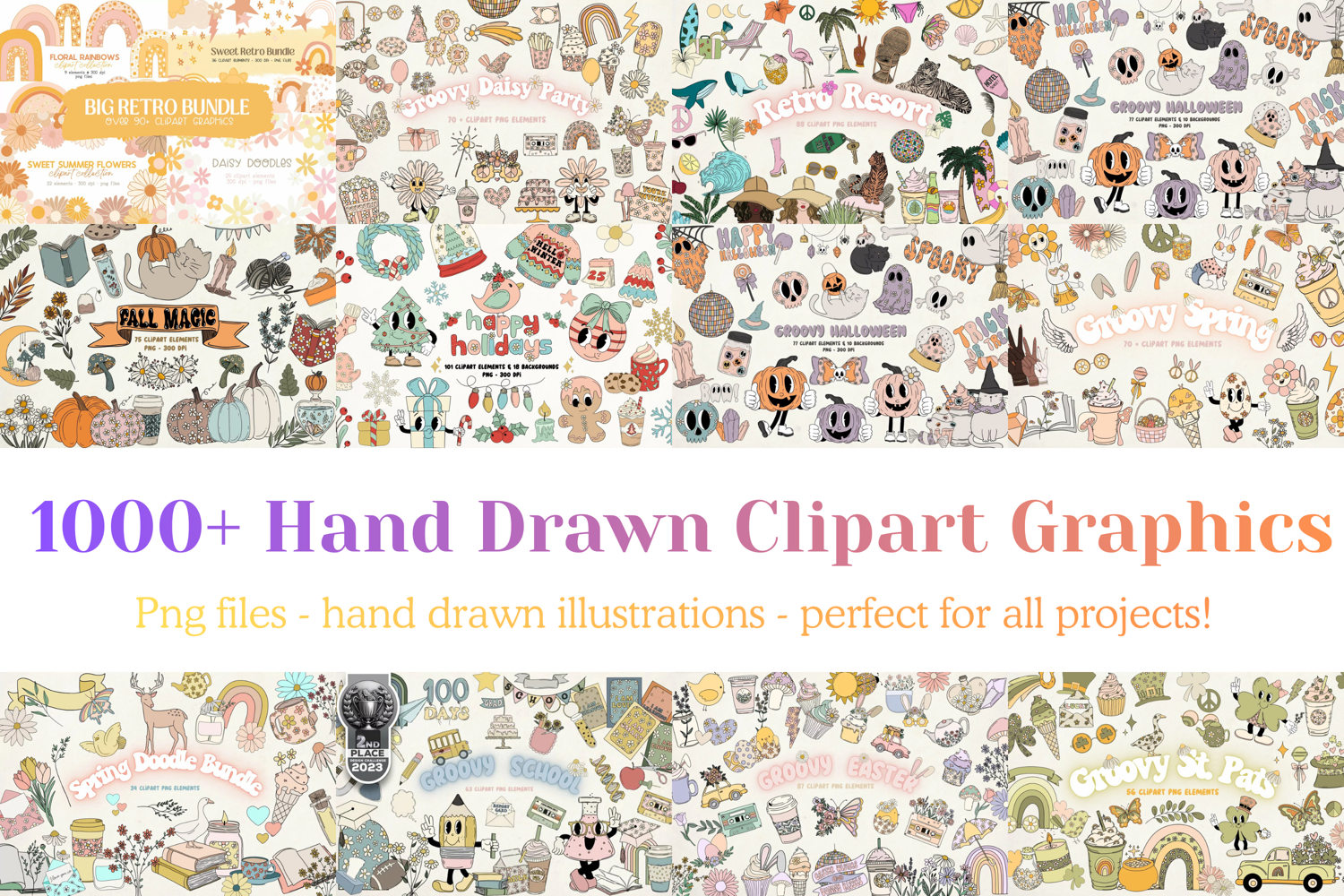 Hand Drawn Clipart Christmas Clipart Easter Clipart St Patricks Day Clipart Boho Spring Clipart Retro Clip Art Bundle Kids Illustration Png Groovy Clipart School Winter Holiday Clip Nart Huge Bundle Of Clip Art Graphics
