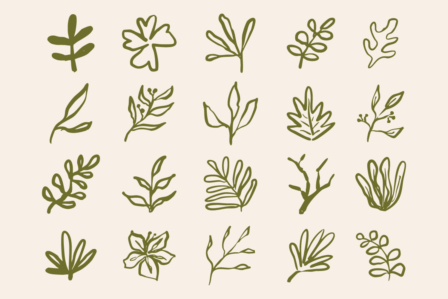 This leaf doodle bundle features a collection of hand-drawn botanical elements in a natural and organic line art style. These simple and elegant leaf illustrations are perfect for adding a fresh and aesthetic touch to your designs.