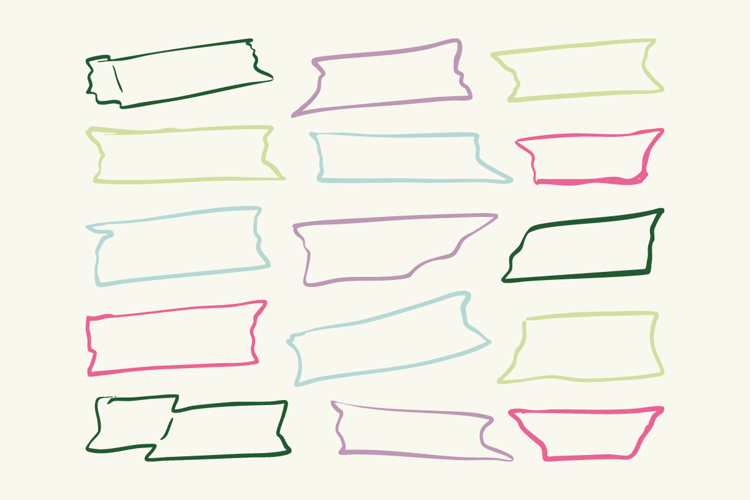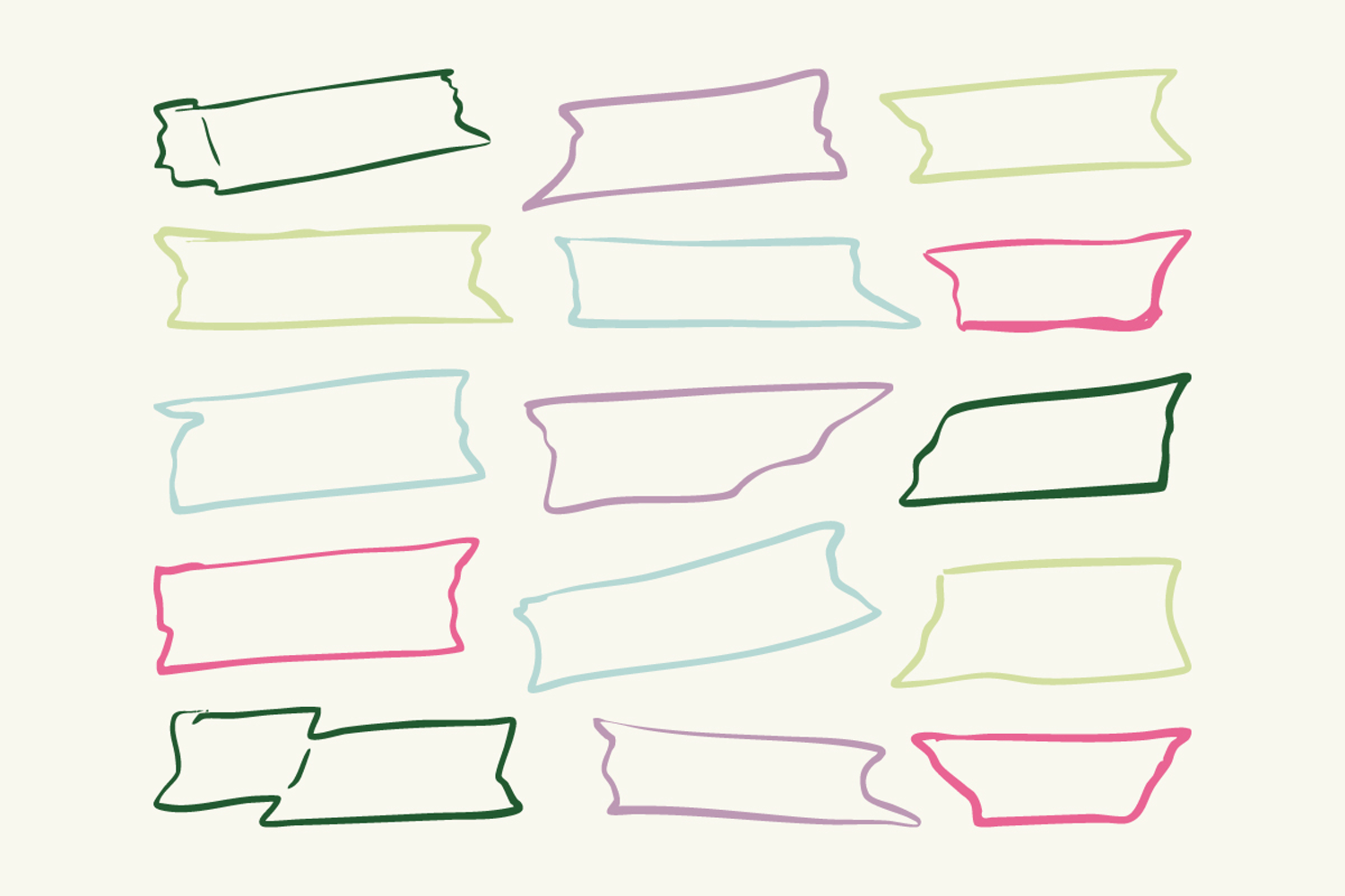 This hand drawn ribbon and label doodle set features outline banner shapes perfect for branding, packaging, stickers, tags, and social media design.