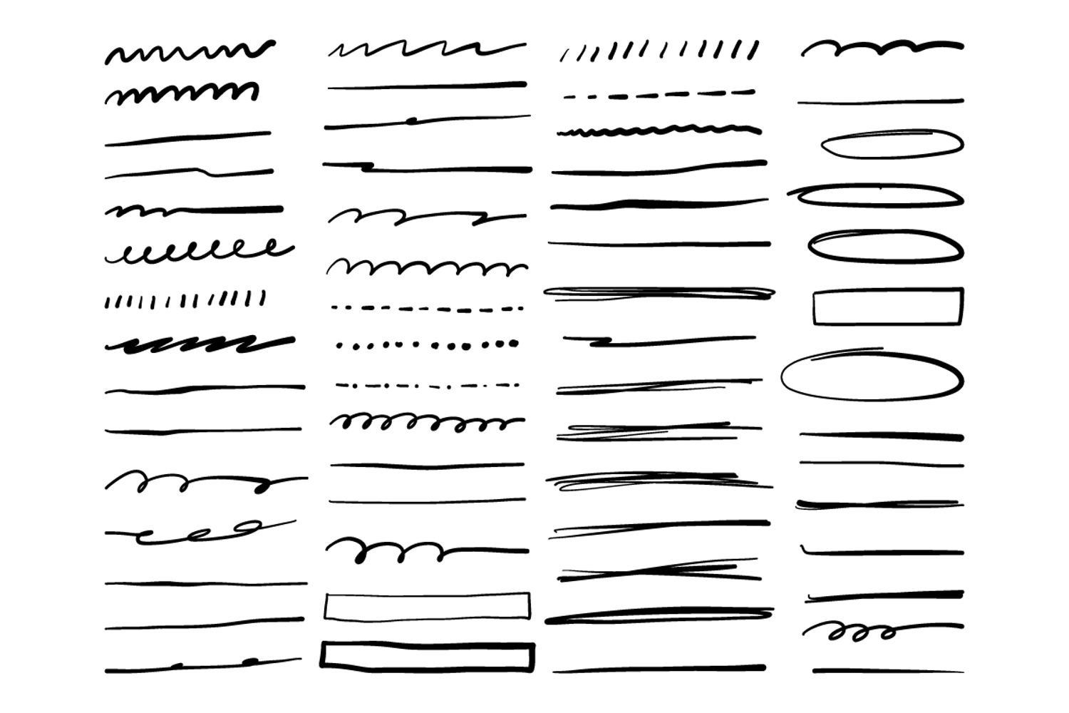 This hand drawn underline and divider set features scribble stroke elements perfect for highlighting text, notes, social media, UI design, and creative projects.
