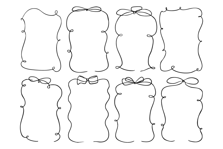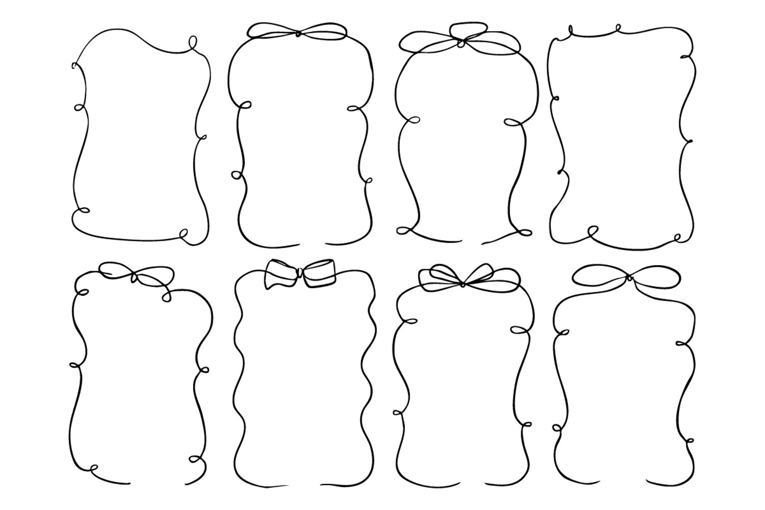 This cute ribbon frame set features a collection of hand-drawn label shapes decorated with bow and ribbon details. Designed in a soft and feminine doodle style, these frames add charm and elegance to any design.