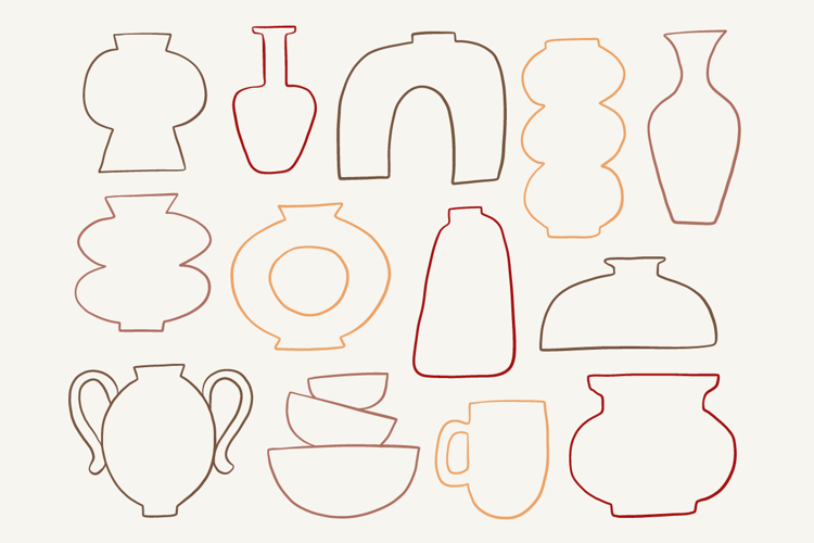 Similar Design Products to Hand Drawn Vase Pottery Outline Set Line Art SVG