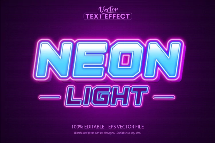 I am happy to present you my new neon style text effect design. Just edit the text and type whatever you want. The effect will be applied. You will make a difference in your projects with this new text effect. Open this text effect with adobe illustrator and use it in any project you want.