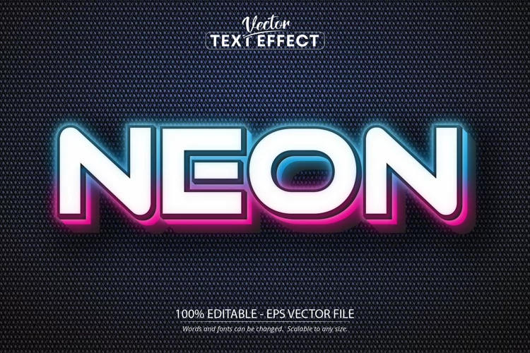 I am happy to present you my new neon style text effect design. Just edit the text and type whatever you want. The effect will be applied. You will make a difference in your projects with this new text effect. Open this text effect with adobe illustrator and use it in any project you want.